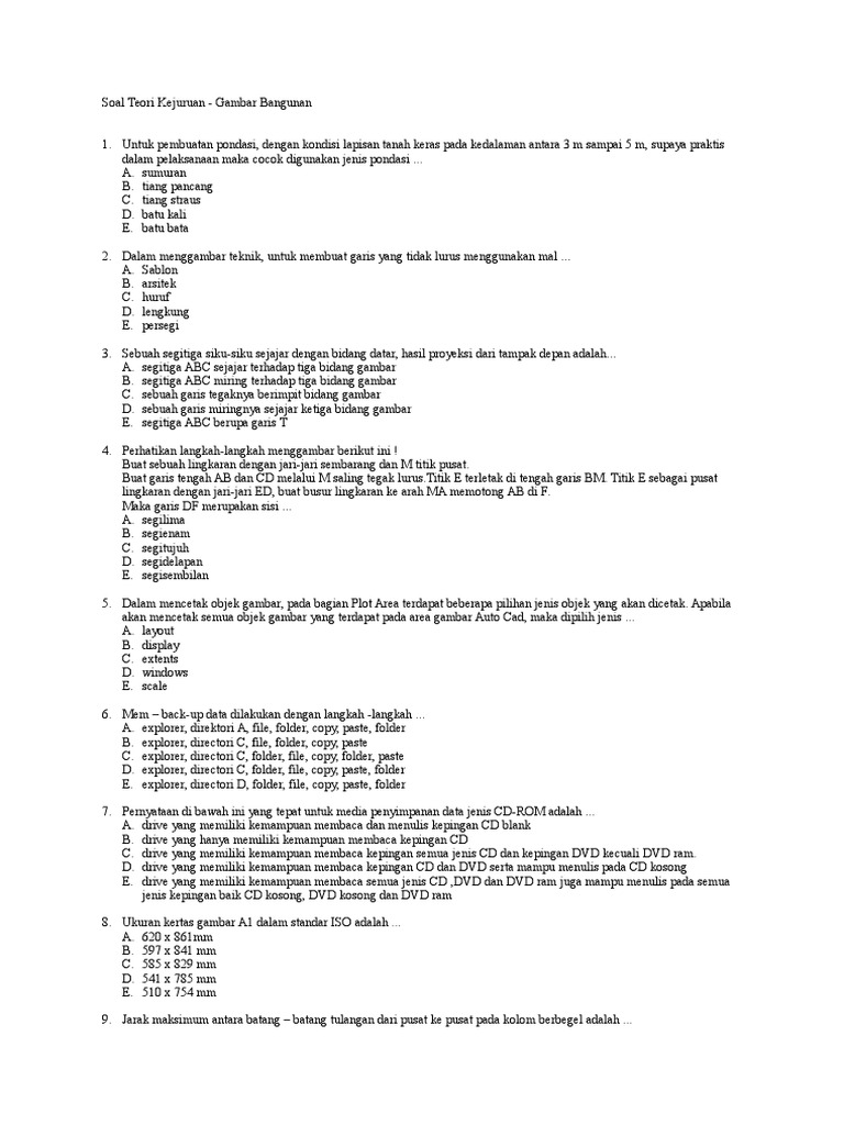 Periksa dan bacalah soal soal sebelum a nda menjawabnya. Save save contoh soal konstruksi pilihan ganda for later. Soal ulangan semester smk 4 auto cad 40 soal.
